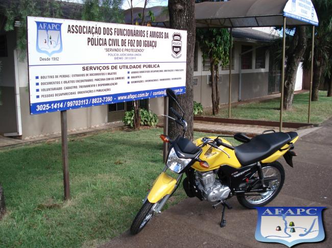 A parceira MOTEC faz entrega na sede da AFAPC da moto HONDA FAN 125CC - 0 KM, que será sorteada dia 31 de maio de 2014 como principal prêmio da Ação Entre Amigos, promovida pela AFAPC - Associação dos Funcionários e Amigos da Polícia Civil/ Foz do Iguaçu e HEAAGI Eventos. Para maiores informações ligue no tel 45-3027-3698.