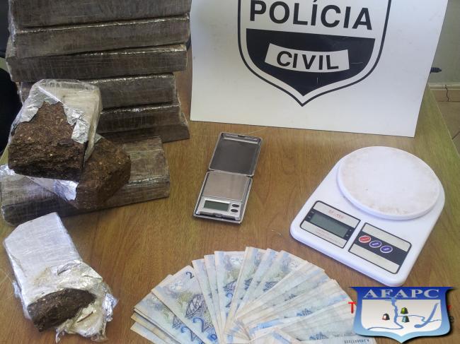 Na delegacia os 27 tabletes de maconha foram pesados e totalizou a quantia de 24 quilos da droga. Em uma consulta, os policiais descobriram que a esposa de Laerte encontra-se presa pelo crime de tráfico de drogas. Ao checar no sistema foi localizado dois (02) mandados de prisão em aberto contra Laerte, um por tráfico de drogas e outro por associação criminosa.
