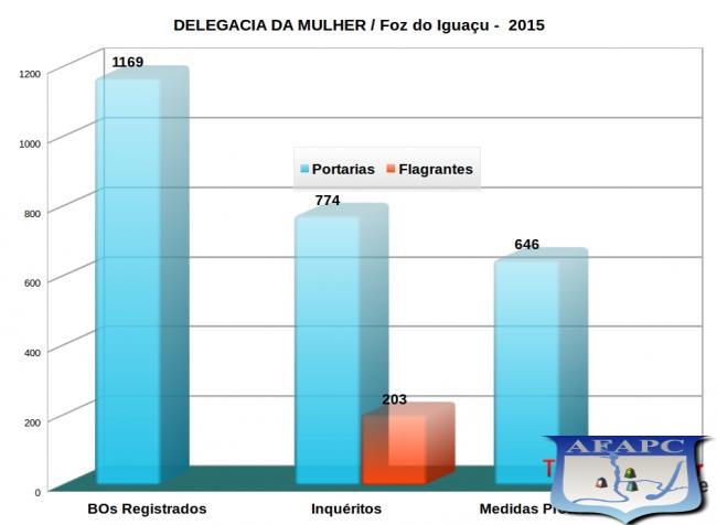 A Delegacia da Mulher e do Turista de Foz do Iguaçu, apresentou esta semana os números relacionados aos trabalhos realizados pela Delegacia no ano de 2015. No total foram registrados pela delegacia cerca de 1.169 boletins de ocorrência de crimes apurados através da Lei Maria da Penha. Lei sancionada em 7 de agosto de 2006.