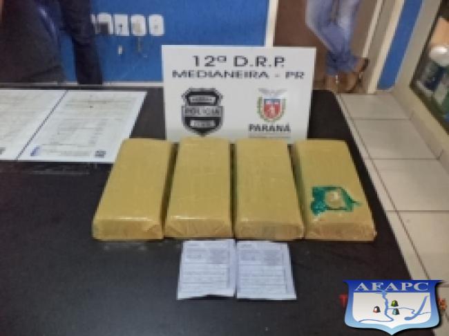 Conforme a polícias, elas viajavam em um ônibus do transporte de passageiros que percorria o itinerário de Foz do Iguaçu para Pato Branco/PR. A abordagem ocorreu na rodoviária de Medianeira após a polícia receber uma denúncia. Ao verificar a situação, os policiais localizaram as jovens e em revista pessoal encontraram o entorpecente que estava dividido em quatro tabletes e preso as pernas das suspeitas.