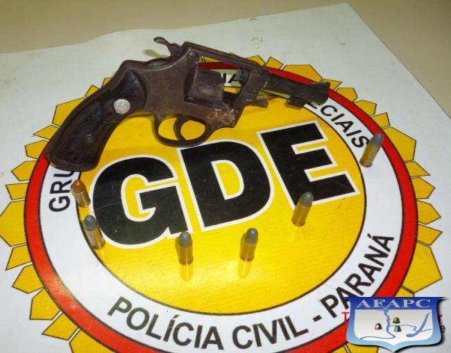 Em revista ao quarto do suspeito, os policiais encontraram em seu guarda roupa um revólver calibre 32 municiado com 06 cartuchos intactos do mesmo calibre. Diante dos fatos "Ronaldo" foi autuado pelo crime de posse irregular de arma de fogo, sendo encaminhado a Delegacia de Polícia Civil para procedimentos.