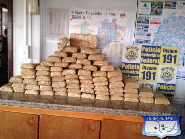 No inicio da manhã desta sexta-feira, 24 de outubro de 2014, uma equipe do DENARC (Divisão Estadual de Narcóticos) do núcleo de Foz do Iguaçu e servidores da Delegacia da Policia Rodoviária Federal de Foz do Iguaçu, equipe em serviço no Posto de Fiscalização da PRF na cidade de Santa Terezinha de Itaipu, procederam a abordagem policial a um veículo Renault / Guincho, modelo plataforma, de placas AST-8297, com placas de Cascavel/PR.