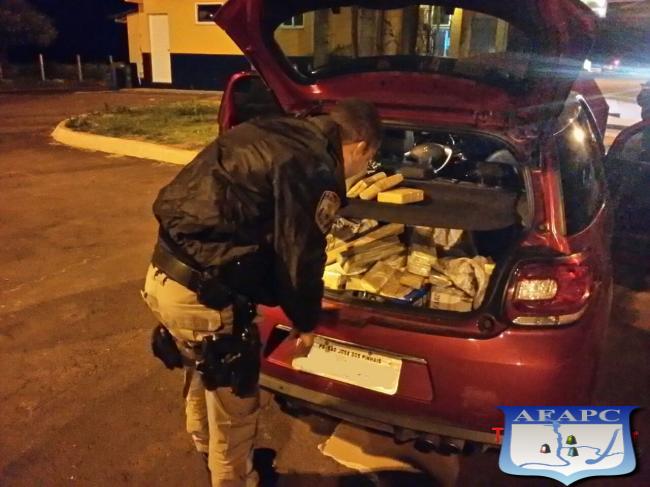 A droga era transportada em um automóvel Citroen / DS3, abordado na BR-277. O motorista, com 19 anos de idade, foi preso em flagrante. Aos policiais, o homem disse que pretendia levar a maconha até Curitiba. Após conferência dos sinais identificadores, os agentes constataram que o carro tinha placas clonadas e havia sido roubado no último dia 2 de novembro, na capital paranaense.