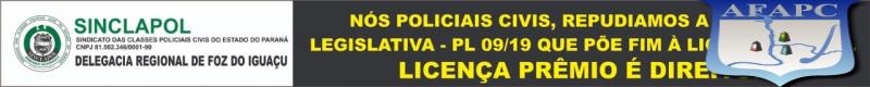 Irmãos/irmãs Policiais Civis, convocamos a todos/todas para em ato de repúdio, cruzarmos os braços no portão de entrada da Sexta SDP/FOZ, amanhã 08/10 das 13 às 15 horas, para protestarmos contra essa Proposta Legislativa PL - 09/19, que põe fim à nossa Licença Prêmio.